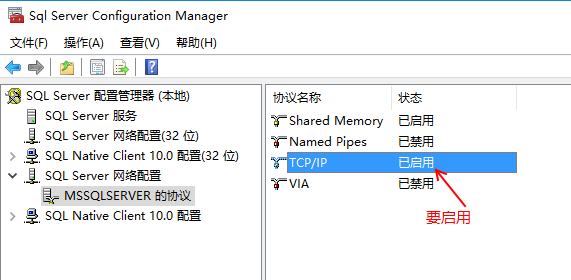 2、sqlserver 必須開啟 tcp協議;