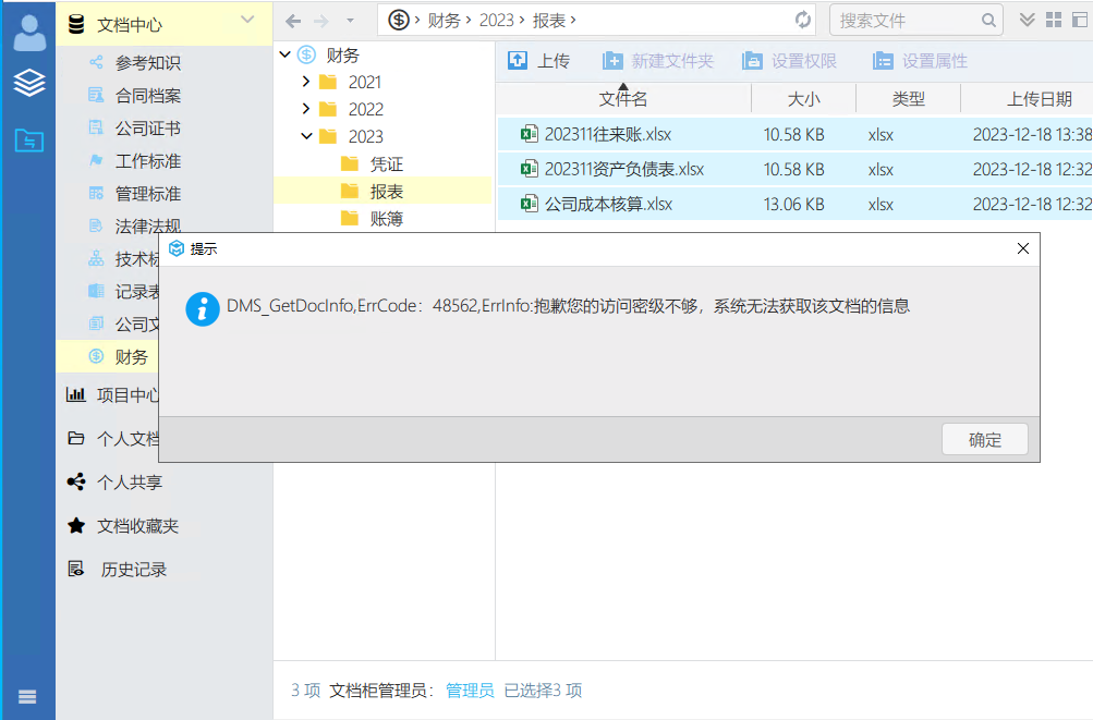 3、有了前兩項設置后,x用戶登錄后,若其針對文件夾是具有瀏覽或下載權限的,但因為,x用戶的涉密等級不夠,從而不能瀏覽或下載超過其涉密的等級的文件。