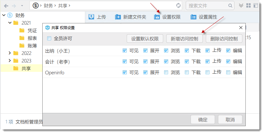 創(chuàng)建文件夾:系統(tǒng)只允許文檔柜管理員或文件夾管理員才能創(chuàng)建文件夾