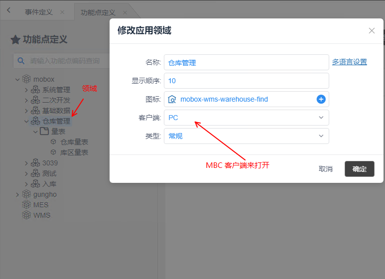 2、mobox3定義的功能領(lǐng)域可以發(fā)布到 MBC客戶(hù)端
