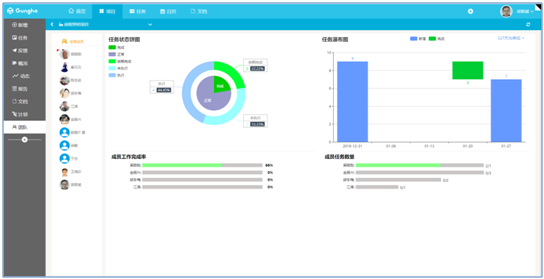 能對本項目的任務執行狀態進行統計分析,能看到完成的排行等信息