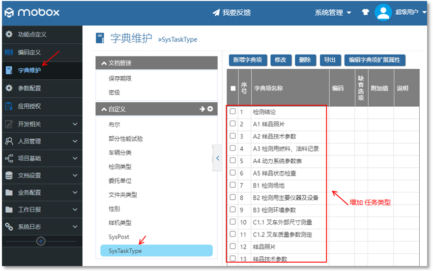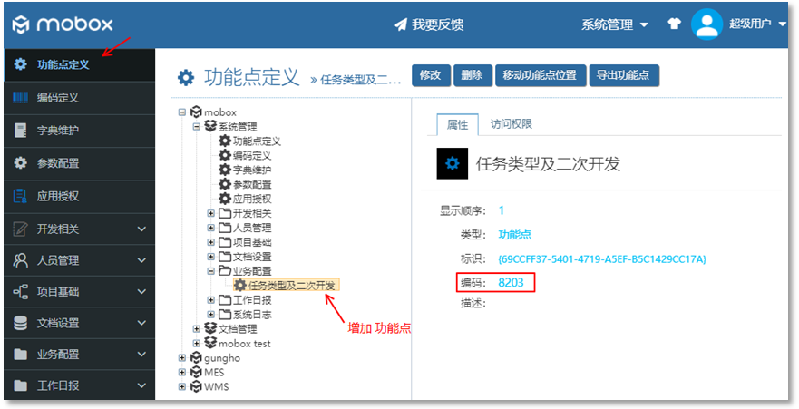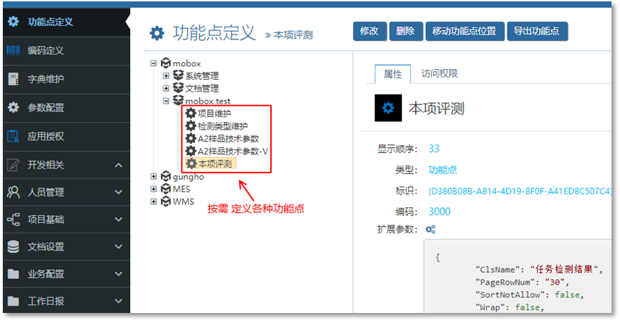 通過Mobox 3000 功能點進(jìn)行定義,設(shè)置界面如下: